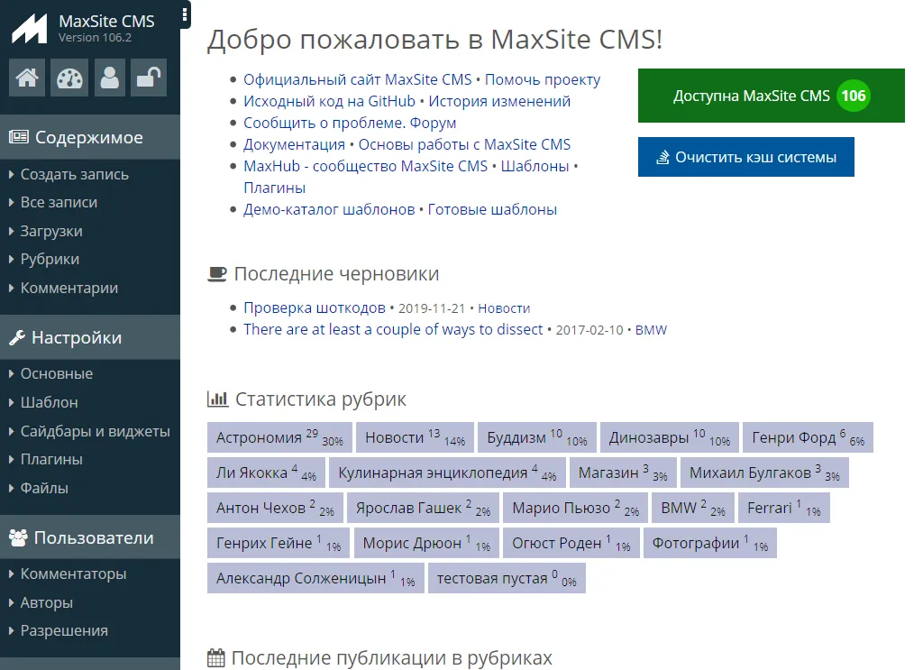 MaxSite CMS создана в 🇺🇦 Украине и предназначена для создания сайтов любой сложности. Система отлично подходит обычным пользователям, вебмастерам, фрилансерам и вебстудиям.