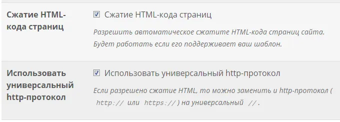 В настройках появилась опция «Использовать универсальный http-протокол». Она будет работать только если отмечена опция «Сжатие HTML-кода страниц». Система автоматом исправит все вхождения «http» и «https» на «//».
