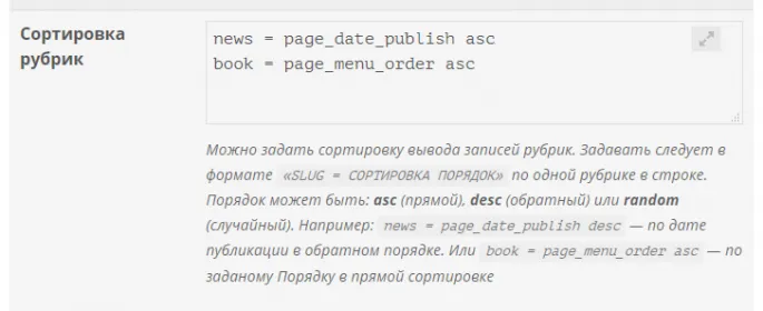 В новой dev-версии MaxSite CMS стала доступна произвольная сортировка рубрик. Стандартно все рубрики выводятся в обратном хронологическом порядке. Однако бывают ситуации, когда нужно его изменить. Например нужен последовательный вывод записей, как в книге.